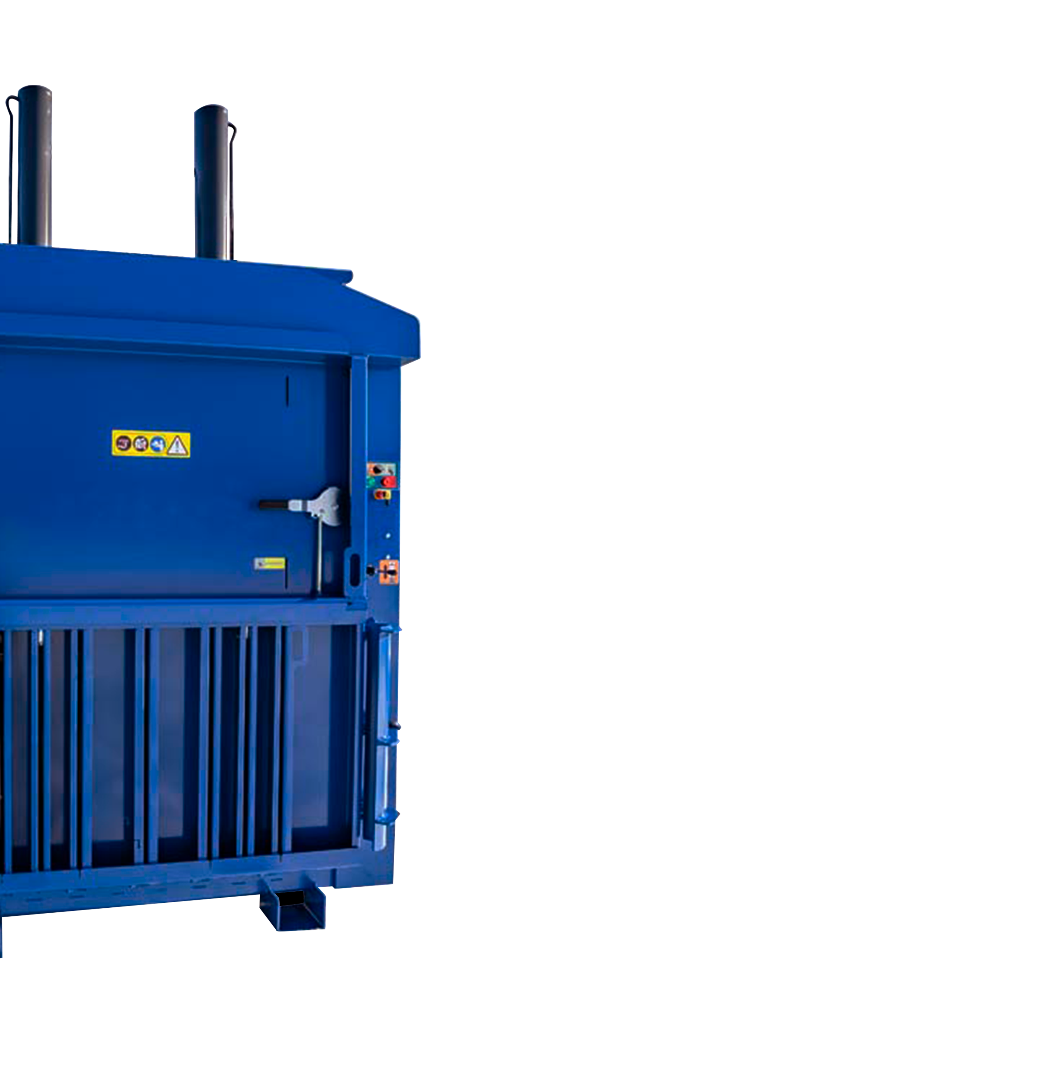 Prensa vertical compactadora económica, resistente y de uso intuitivo. Ideal para espacios reducidos, permite optimizar la gestión de volúmenes altos de material, formando balas compactas de hasta 610 kg.