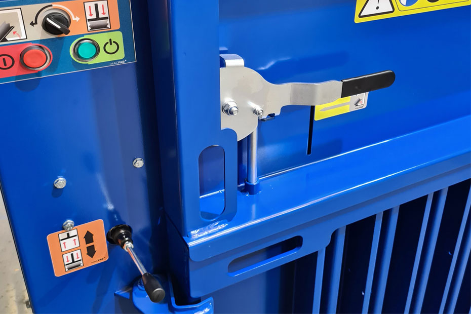La bala se expulsa fácilmente sobre un palé gracias al cilindro hidráulico de expulsión, optimizando tiempo y esfuerzo.