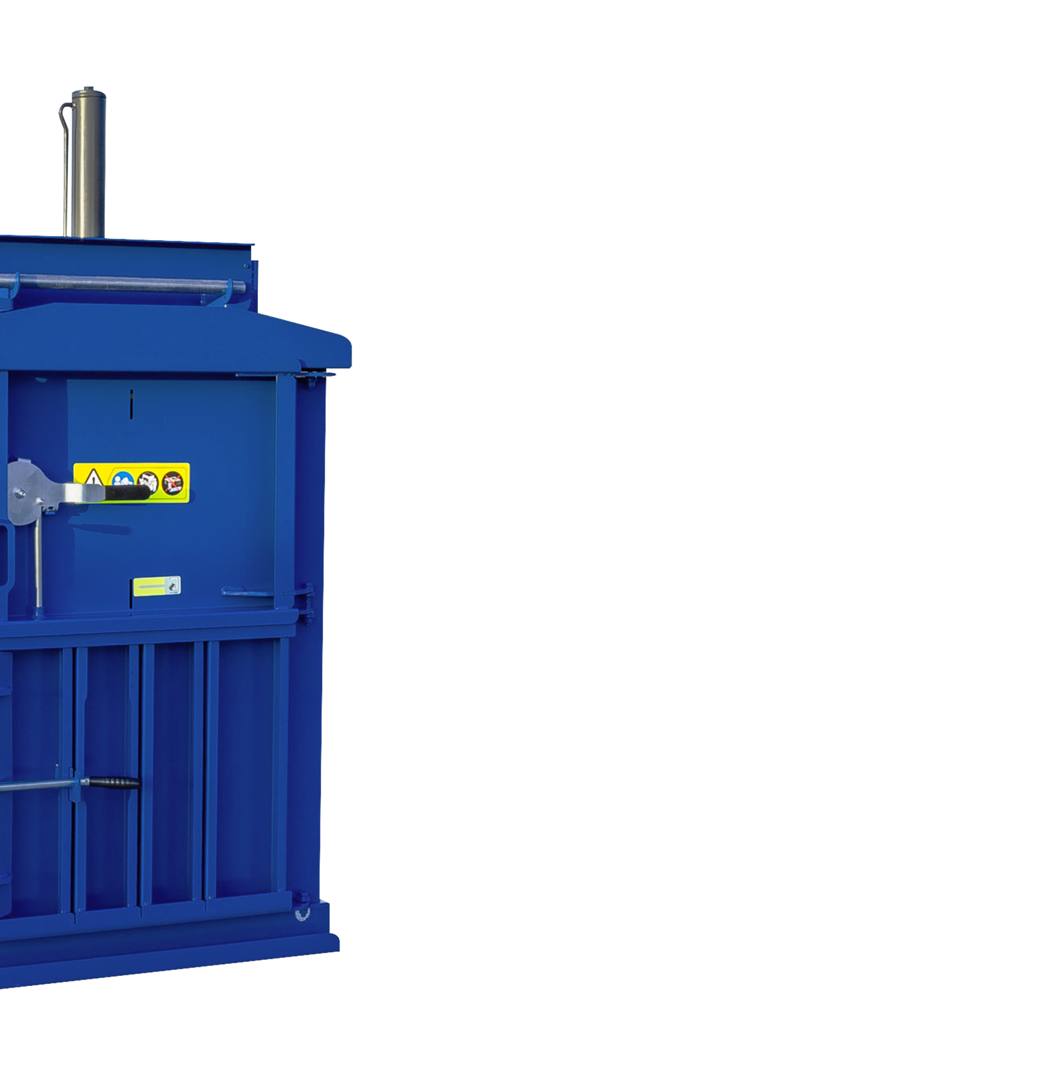 Prensa vertical compactadora económica, resistente y de uso intuitivo. Ideal para espacios reducidos, permite optimizar la gestión de volúmenes pequeños y medianos de material, formando balas compactas de hasta 60 kg.