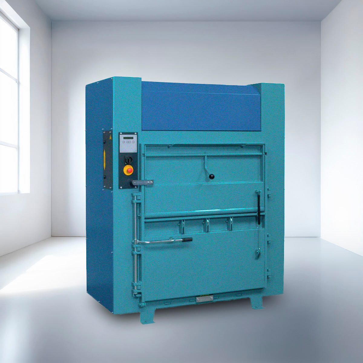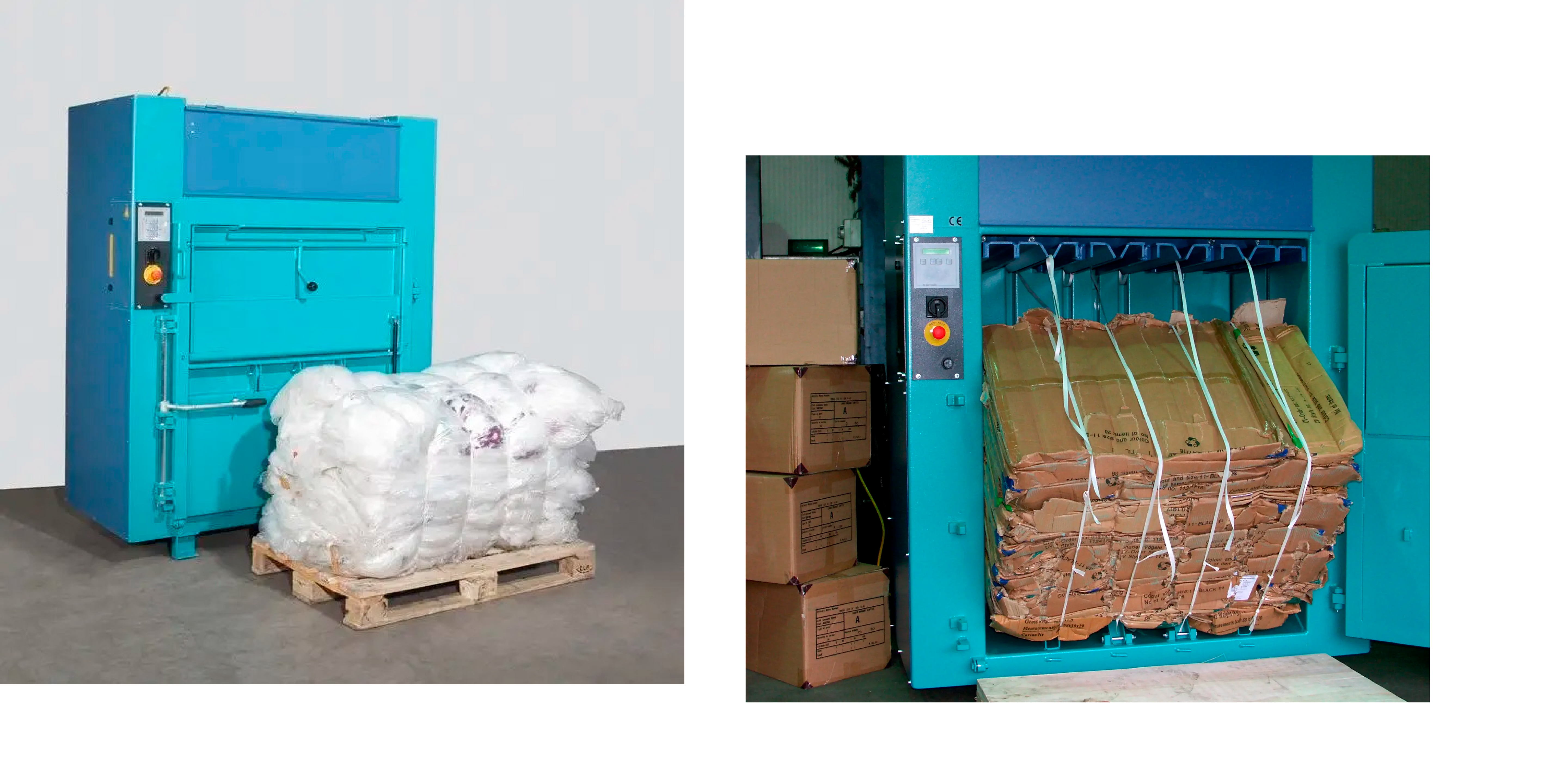 Prensa vertical compactadora económica, resistente y de uso intuitivo. Ideal para espacios reducidos, permite optimizar la gestión de volúmenes pequeños y medianos de material, formando balas compactas de hasta 220 kg.