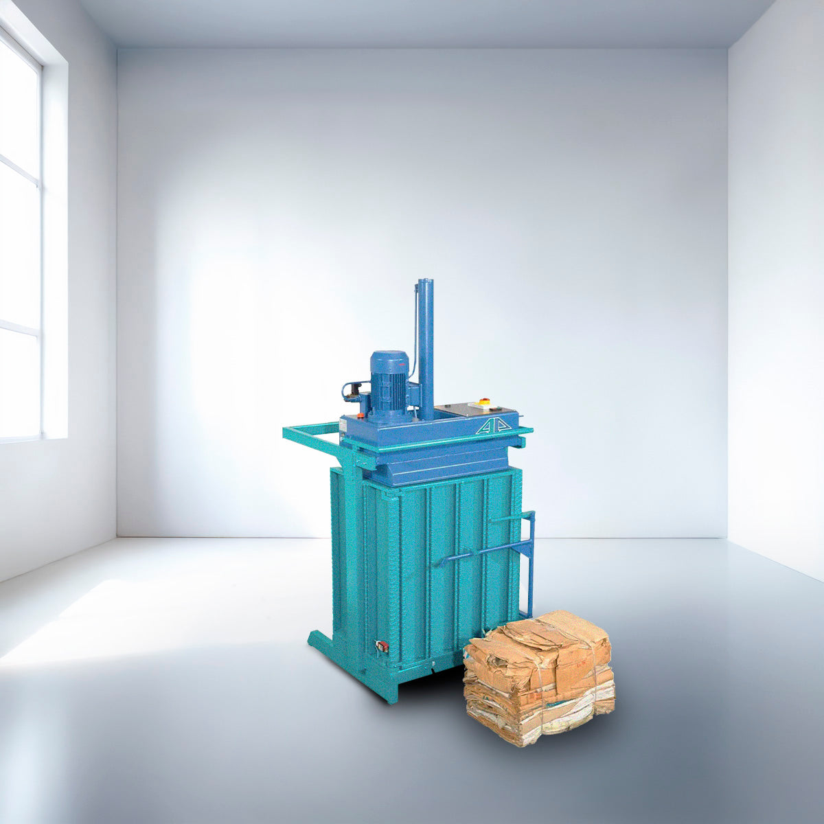 Prensa vertical compactadora económica, resistente y de uso intuitivo. Ideal para espacios reducidos, permite optimizar la gestión de volúmenes pequeños y medianos de material, formando balas compactas de hasta 80 kg.