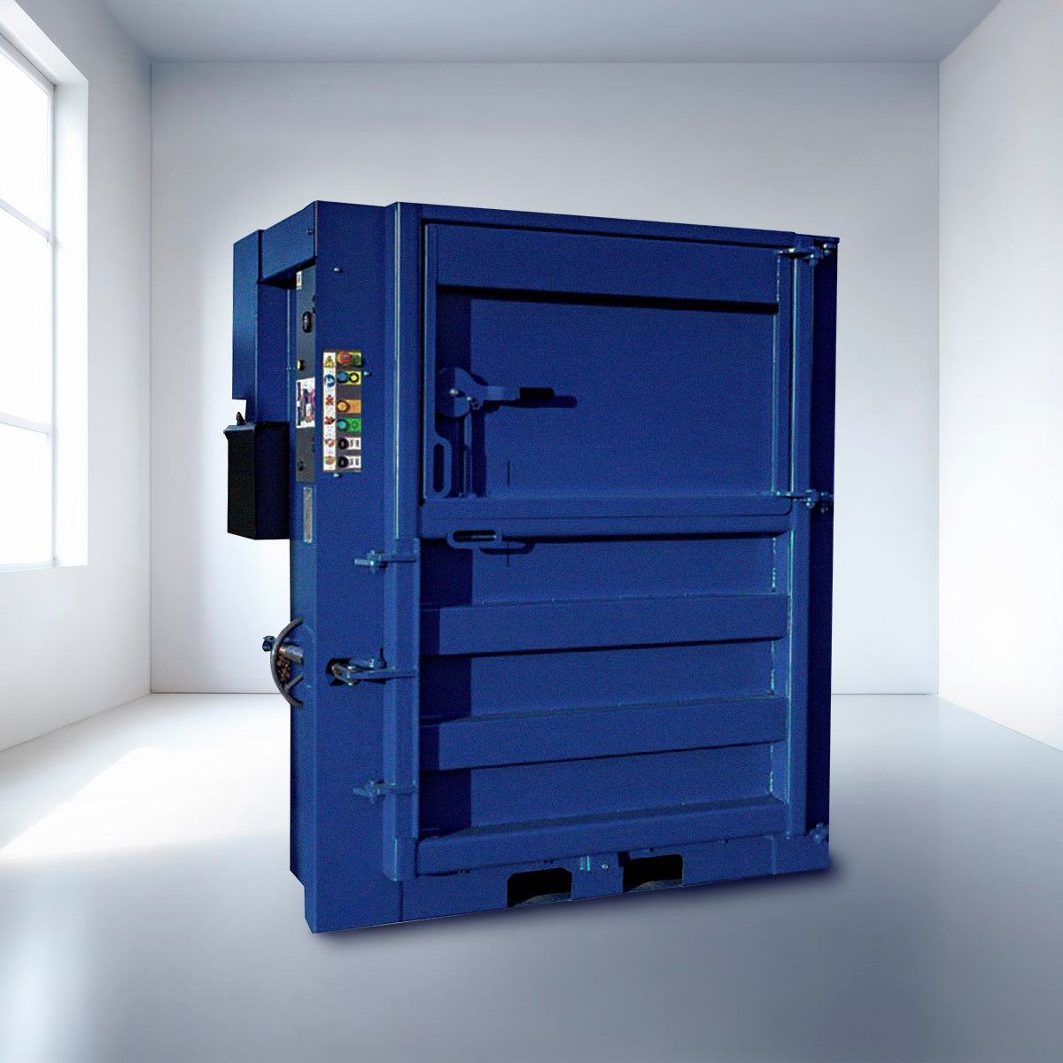 Prensa vertical compactadora económica, resistente y de uso intuitivo. Ideal para espacios reducidos, permite optimizar la gestión de volúmenes pequeños y medianos de material, formando balas compactas de hasta 300 kg.