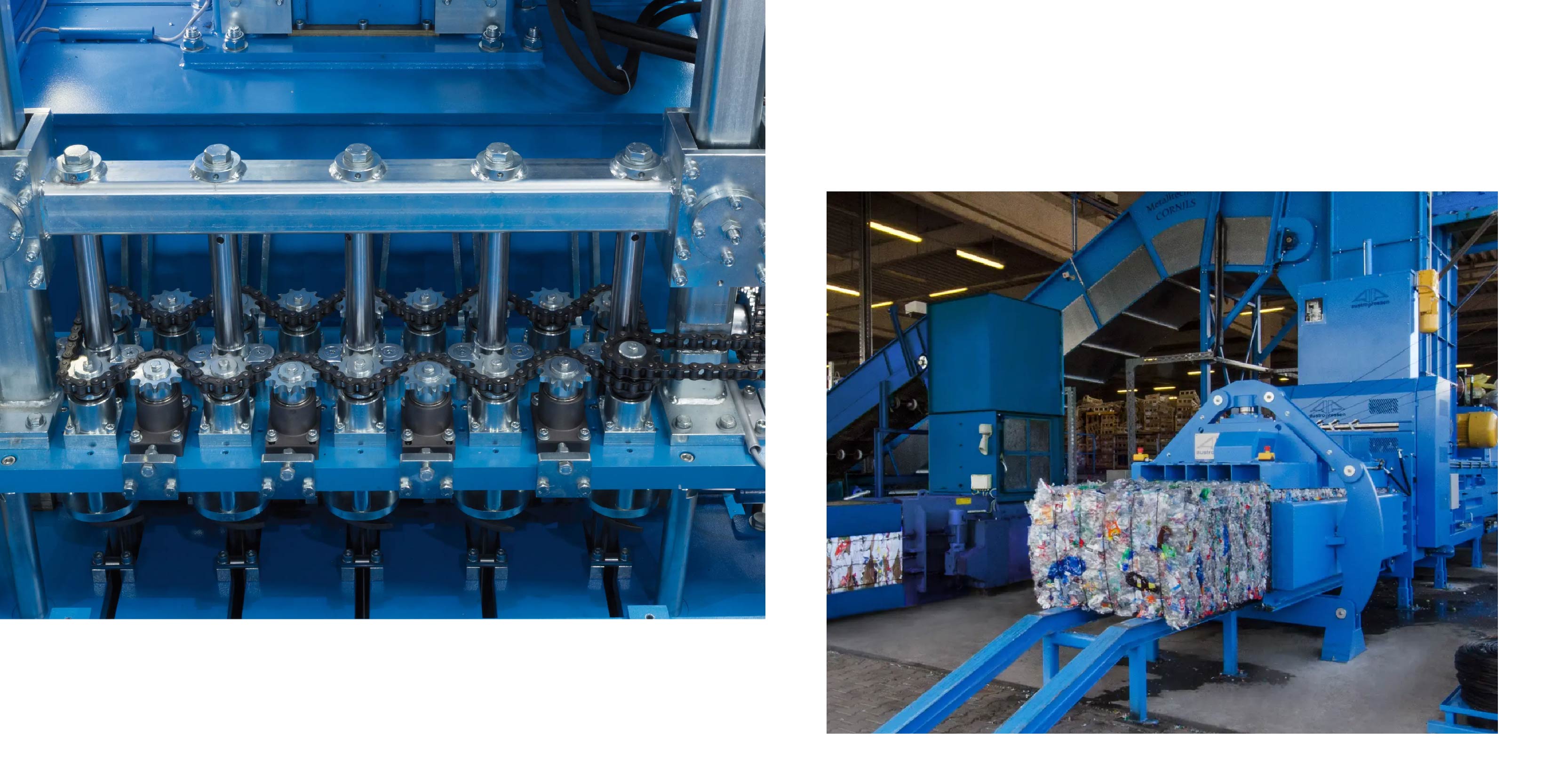 Prensa compactadora Heavy Duty de ciclo automático, ideal para grandes volúmenes y máxima fiabilidad. Produce balas de hasta 1.300 kg, optimizando espacio y costos logísticos. Su diseño reforzado y eficiente garantiza alto rendimiento, bajo consumo y operación continua en entornos exigentes.